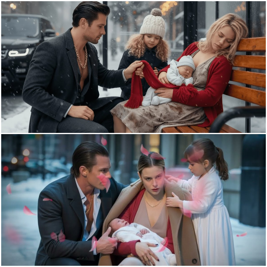 “‘¡Papá, su bebé está congelándose!’, gritó la niña del poderoso empresario al ver a la joven madre sin hogar temblando bajo la nieve… lo que ocurrió después dejó a la ciudad entera en silencio: el hombre más temido y respetado del círculo empresarial detuvo su caravana, tomó a la mujer en brazos y desató una cadena de eventos tan impactante y misteriosa que nadie imaginó cómo terminaría aquella noche.”