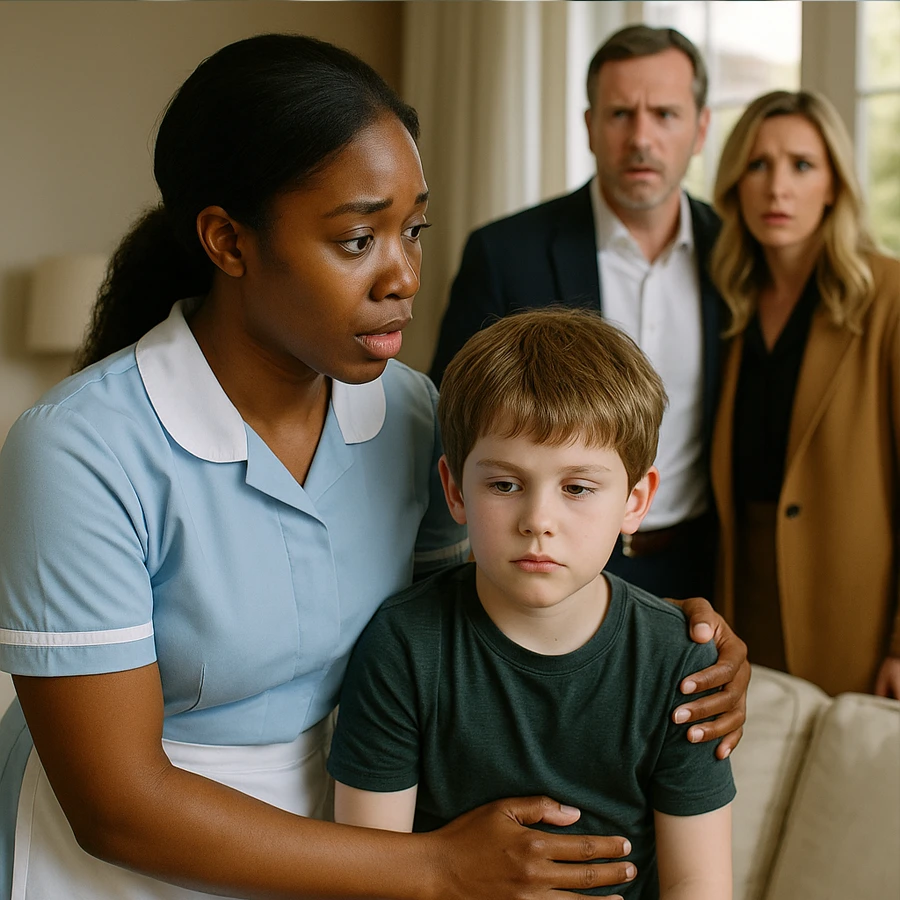 Allí estaba Rosa Johnson, la empleada doméstica de la familia, sentada en el sofá con Mateo en su regazo. El niño, que rara vez sonreía o toleraba contacto físico debido a su autismo, estaba tranquilo, acariciando la mano de Rosa mientras ella le susurraba palabras suaves.