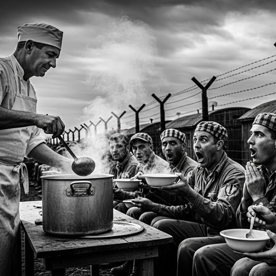Los roles de “carcelero” y “prisionero” seguían ahí, con toda su carga. Pero, entre ellos, se colaban momentos en los que lo que había eran simplemente hombres jóvenes lejos de casa, cansados de la guerra y agradecidos por una comida caliente compartida, aunque fuera desde extremos distintos de la misma mesa.
