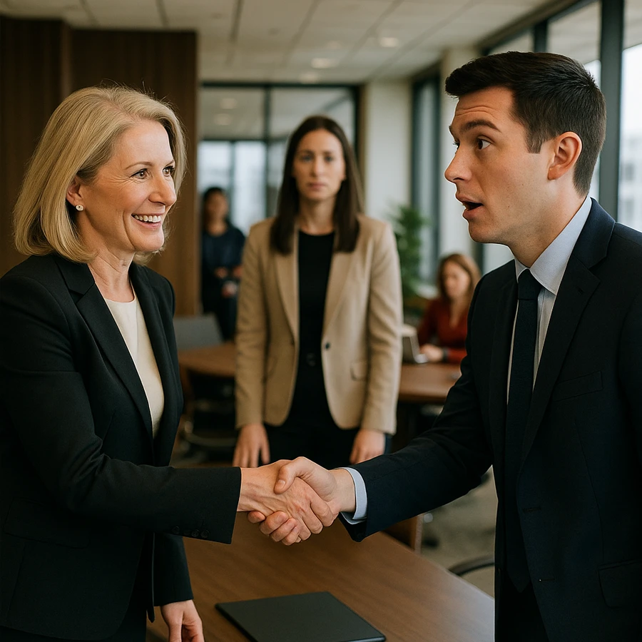 —“Bienvenido a la empresa. Tiene el puesto.”