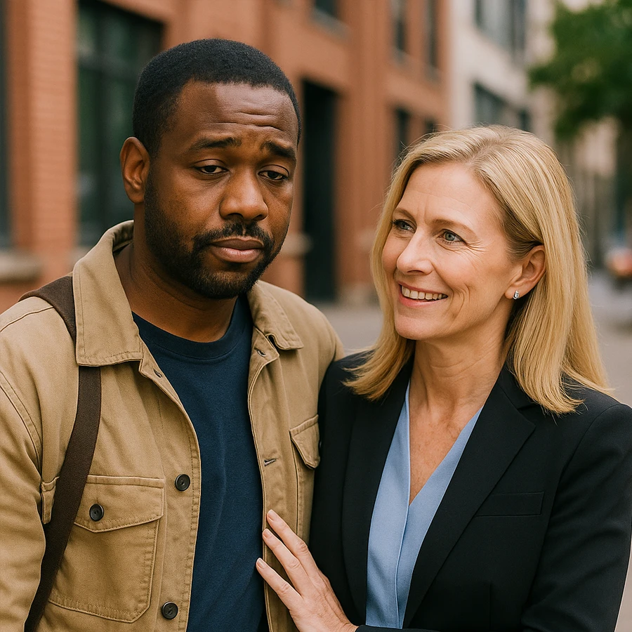 En el camino hacia la entrevista, mientras atravesaba una avenida concurrida, Marcus notó a una mujer de mediana edad que había dejado caer una carpeta llena de documentos. El viento dispersó las hojas por la acera y los transeúntes pasaban sin detenerse.
