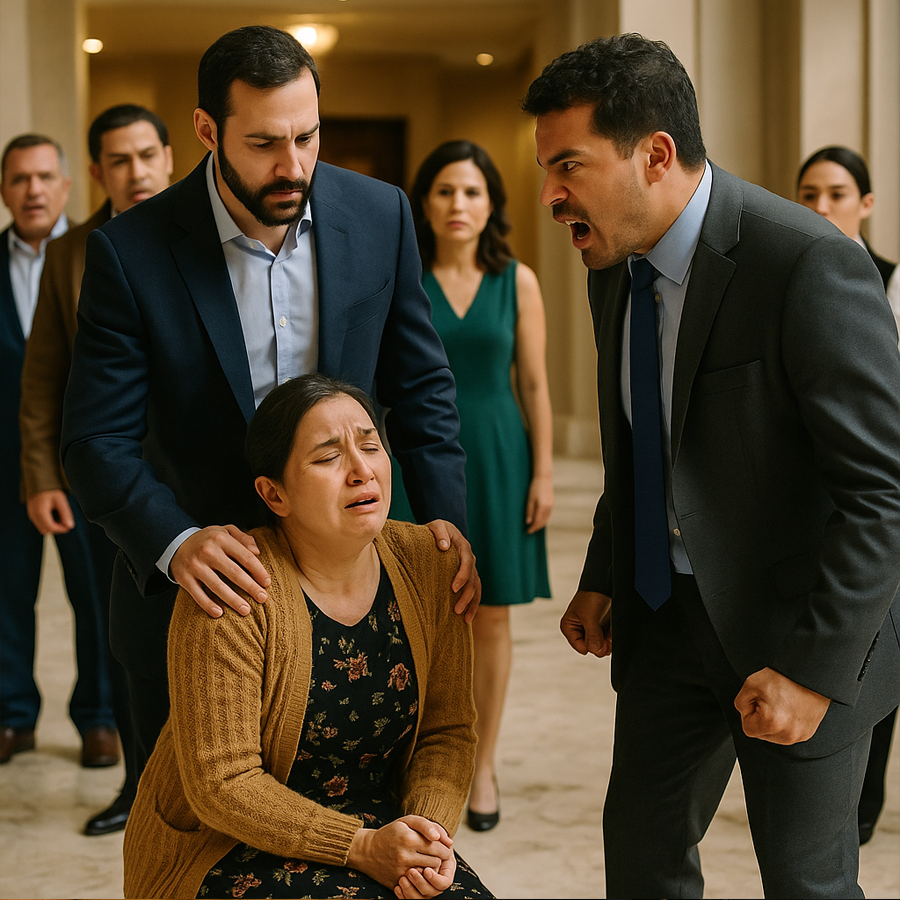 Eran las 8:27 p. m. cuando Rosa Santiago, una mujer sencilla de unos cuarenta y tantos años, entró al salón. Vestía un suéter mostaza, una falda discreta y zapatos que habían visto mejores días. No parecía encajar entre los invitados; algunos la observaron con curiosidad, otros con desdén. Sin embargo, ella caminaba con paso firme. Tenía una misión: entregar un documento a su esposo, quien debía llegar minutos más tarde.