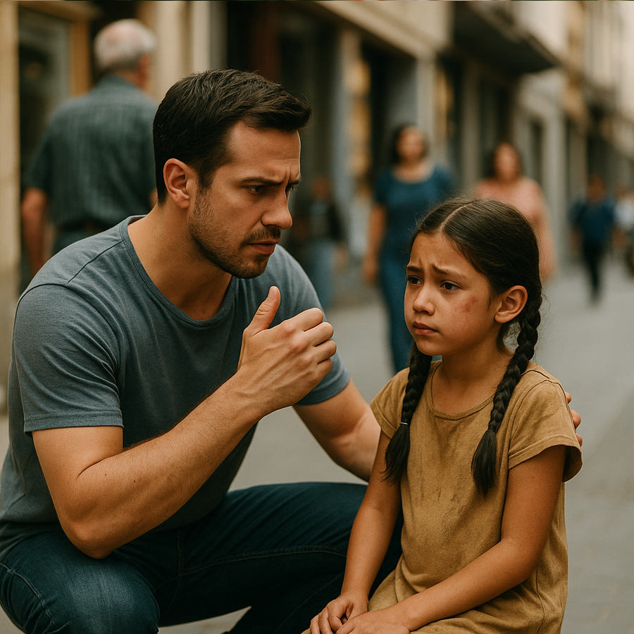 Mientras Andrés caminaba hacia una cafetería, escuchó un leve sollozo. Al principio lo ignoró, pensando que era uno de tantos sonidos de la ciudad. Pero al girar la esquina, la vio: una niña de unos ocho años, con el rostro sucio, la ropa rota y una mirada que mezclaba miedo y cansancio.