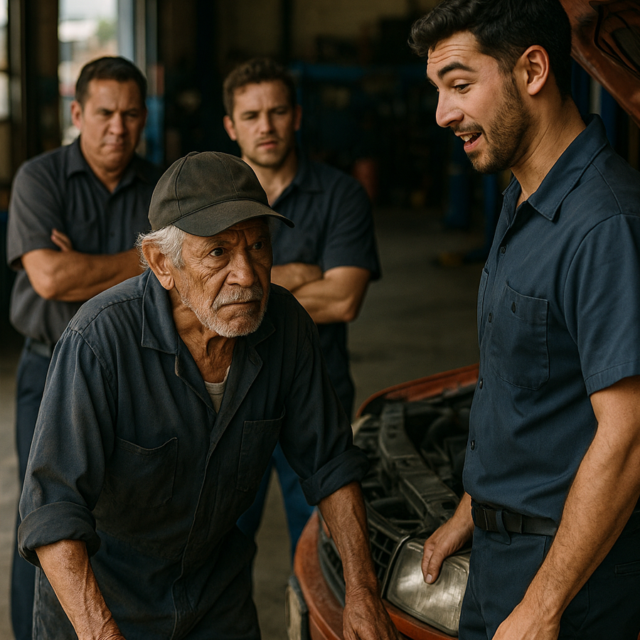 Meses después, el taller cambió su nombre a “Mecánica Márquez”. Los clientes hacían fila para conocer al viejo maestro. Los jóvenes que antes se burlaban ahora lo trataban con respeto y lo consideraban su mentor.