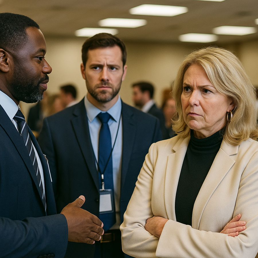 “Empresaria blanca rechaza darle la mano al CEO negro en plena negociación multimillonaria.”