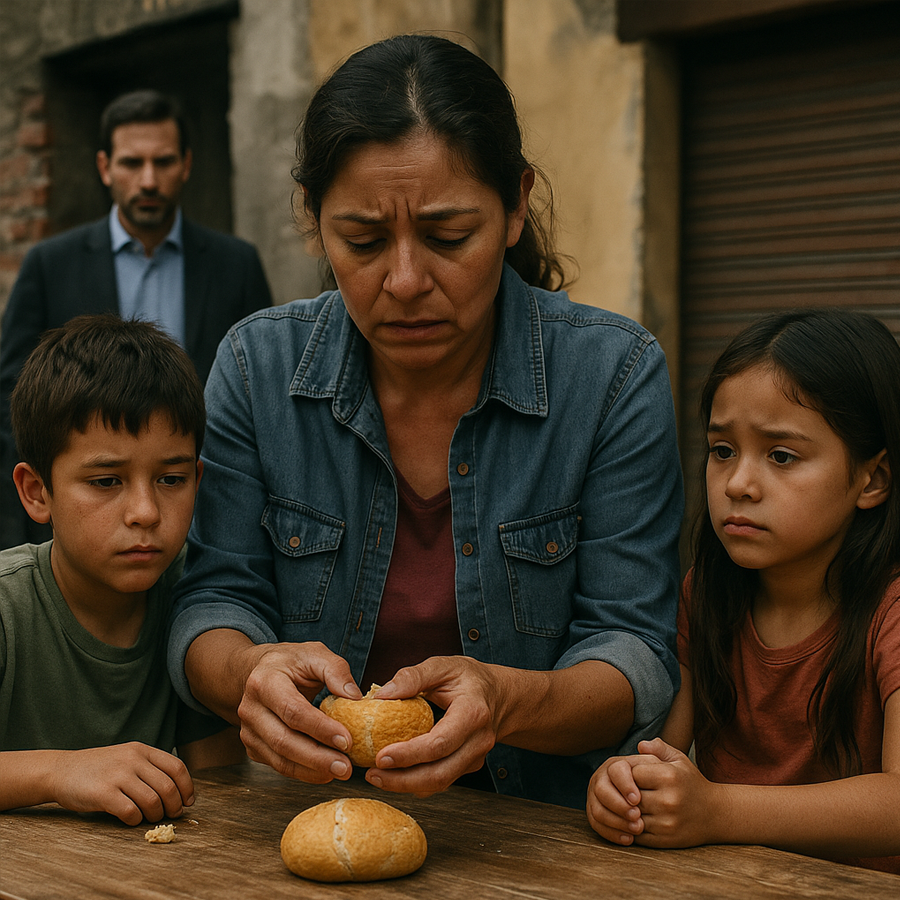 En una mesa de madera, desgastada por los años, Rosa Méndez, una madre viuda de 34 años, partía cuidadosamente un pan duro en tres pedazos iguales.