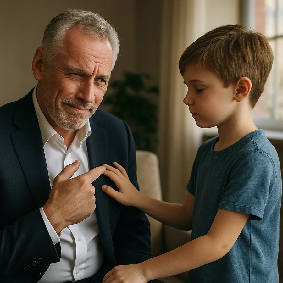 El niño no respondió. Simplemente levantó su mano y la apoyó suavemente sobre el pecho del millonario.
