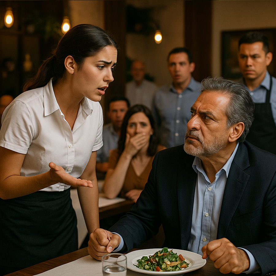 Los clientes más cercanos dejaron de comer. Un par de camareros se escondieron tras el mostrador. Y el empresario, rojo de ira, se quedó sin palabras por primera vez en años.—¿Cómo te atreves…? —alcanzó a decir.