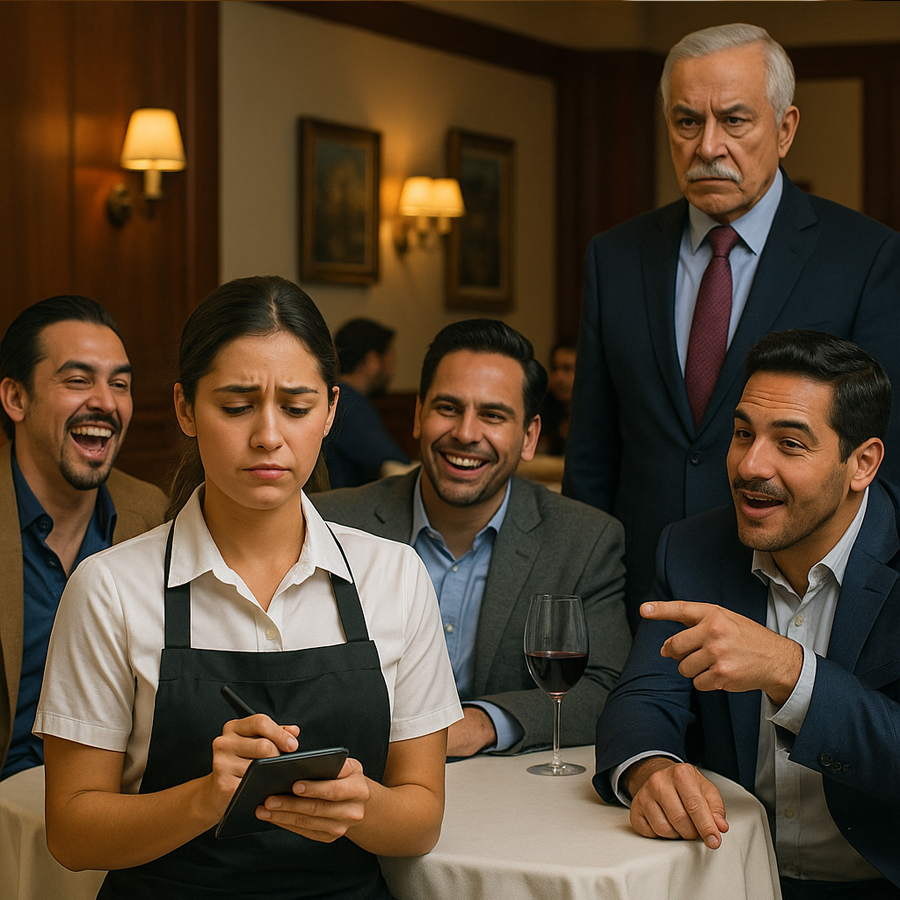 Las risas retumbaron. Lucía bajó la mirada y anotó la orden. Los comensales de otras mesas empezaron a notar el ambiente incómodo.