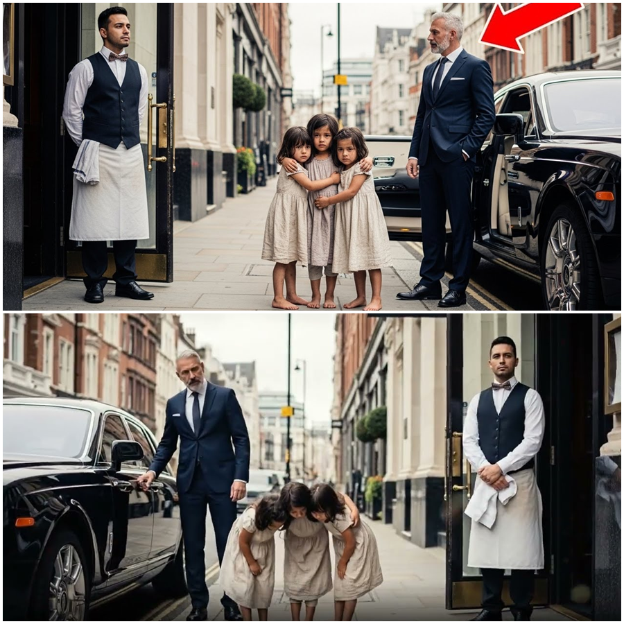 “Trillizos hambrientos fueron expulsados sin piedad de un restaurante de lujo… pero nadie imaginó que un millonario, testigo silencioso del incidente, revelaría un giro tan impactante que cambiaría para siempre el destino de los niños y pondría en evidencia el oscuro secreto del establecimiento.”