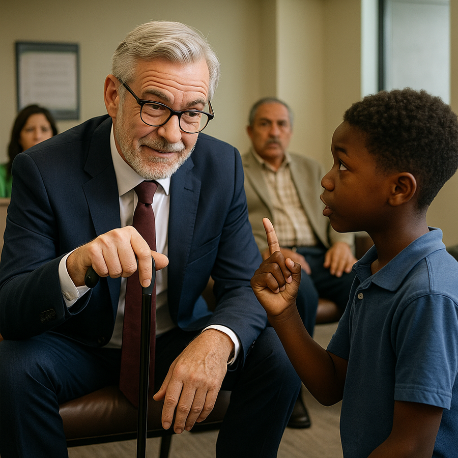 Minutos después, la puerta se abrió y entró Samuel, un niño de unos 10 años, de piel morena, mirada brillante y una energía que llenó la habitación. Vestía ropa sencilla y sostenía un pequeño cuaderno gastado.