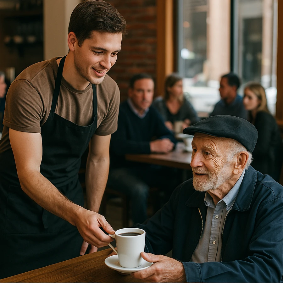 Un camarero pobre pagó un café a un anciano… ¡sin saber su verdadera identidad!