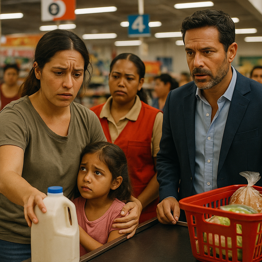 Era una tarde cualquiera en Ciudad de México. El supermercado “La Esperanza” estaba lleno de gente apurada comprando lo necesario antes del cierre. Entre los pasillos, una mujer joven, con el cabello recogido y una niña pequeña de la mano, recorría los estantes con calma.