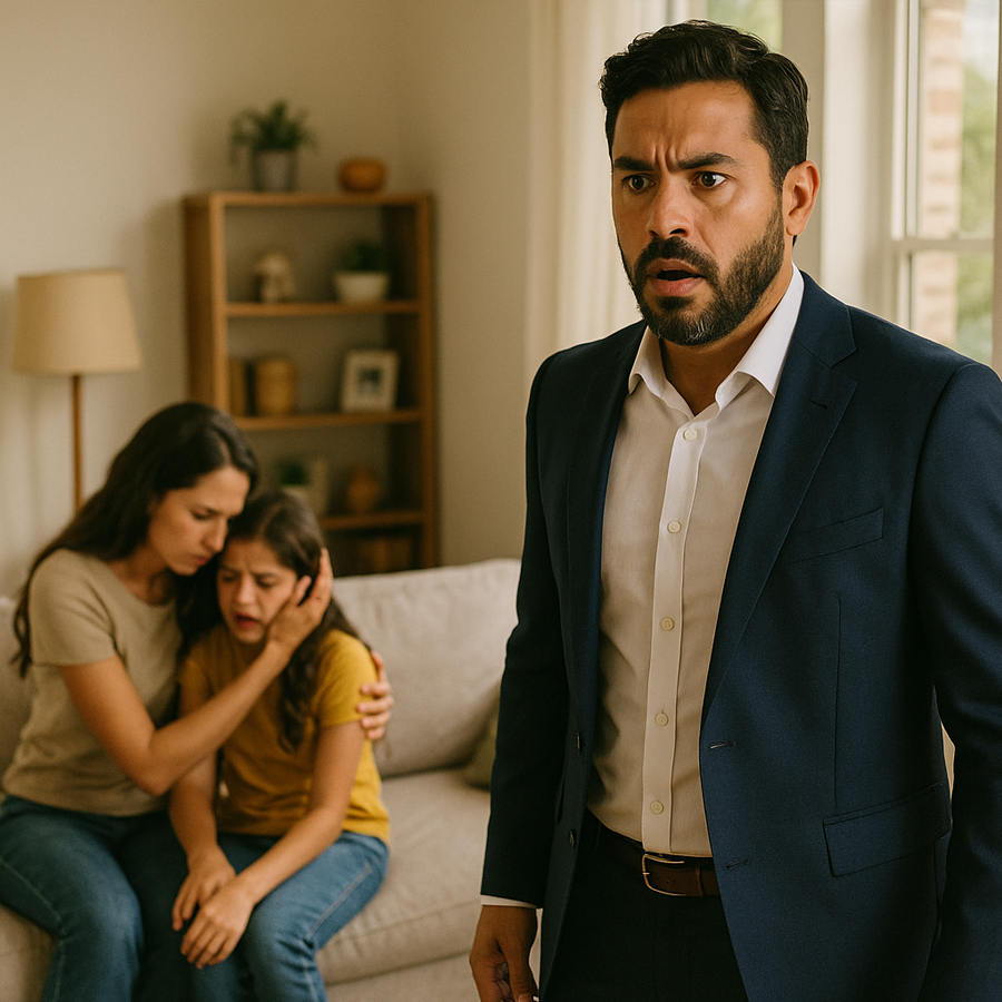 Su esposa, Mariana, estaba sentada en el sofá abrazando a su hija de ocho años. Ambas lloraban. Al ver a Héctor en la entrada, Mariana se quedó inmóvil, con los ojos abiertos de par en par. La niña, al notarlo, corrió hacia él y lo abrazó con fuerza.