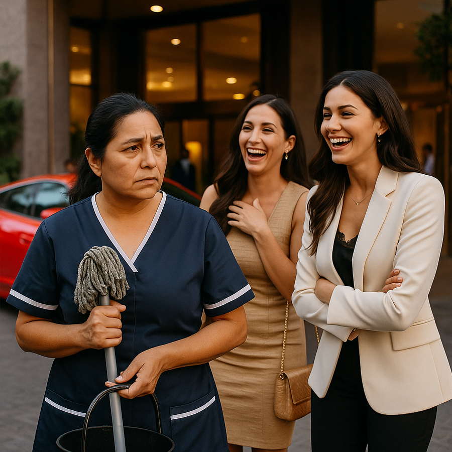 A pocos metros, una mujer de mediana edad barría la acera con movimientos lentos. Llevaba un uniforme azul, el cabello recogido y el rostro cansado. Su nombre era Rosa Martínez. Trabajaba como limpiadora en el edificio desde hacía años. No molestaba a nadie, no hablaba más de lo necesario y siempre mantenía su sonrisa amable.