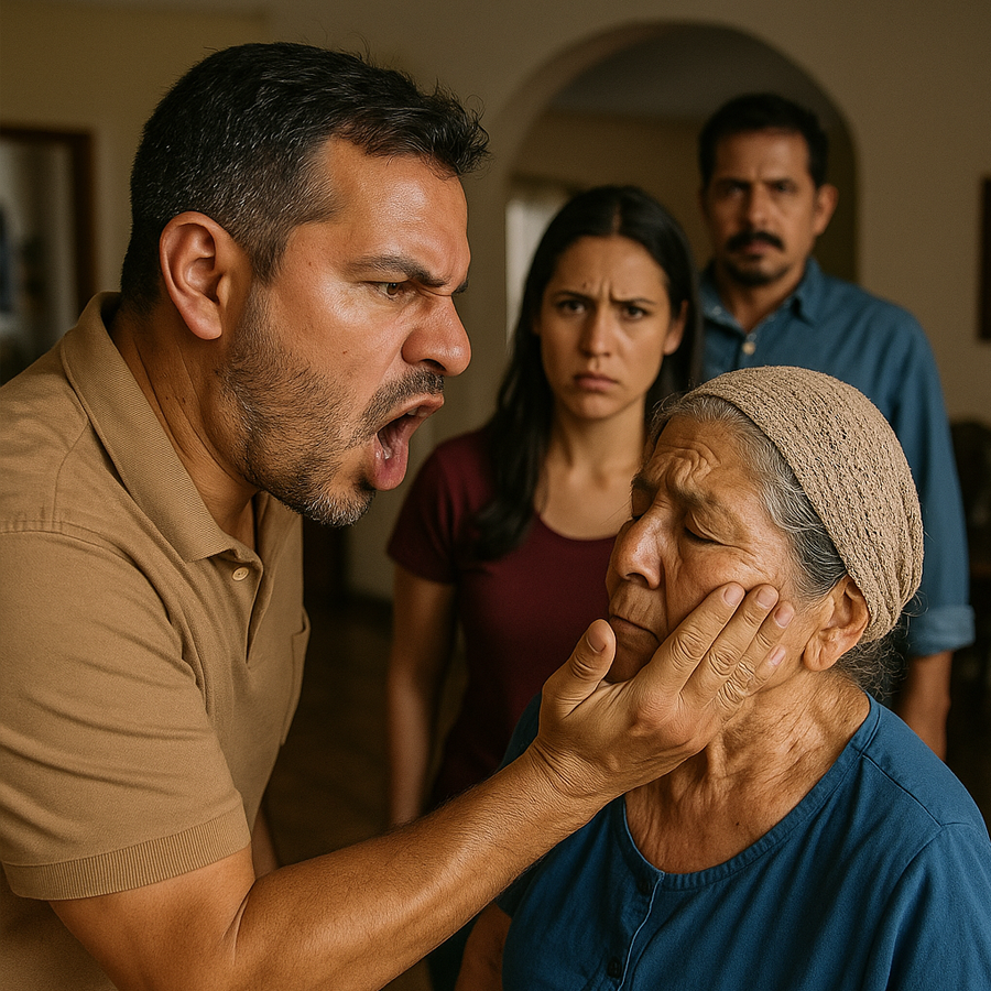 En un arrebato de ira, Julián levantó la mano y golpeó la mejilla de su madre con brusquedad. El impacto resonó en la habitación como un trueno inesperado.