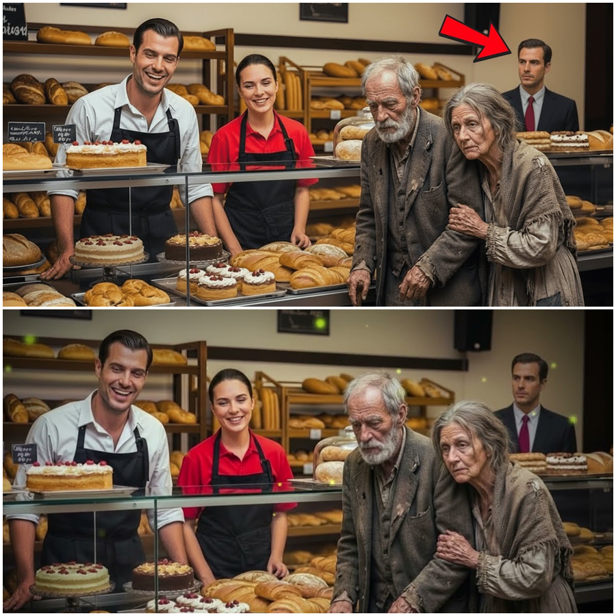“Un hombre sin hogar se acercó tímidamente a la panadería y preguntó: ‘¿Tendrás un pastel caducado para mi esposa?’. Nadie imaginó que un millonario estaba observando la escena desde una mesa cercana… y lo que hizo después, impulsado por un misterio que llevaba años arrastrando, dejó a todos sin palabras y cambió la vida del desconocido para siempre.”