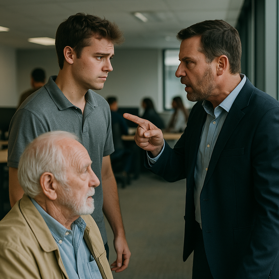 —¡No es tu trabajo jugar al buen samaritano! —interrumpió el gerente, elevando la voz.