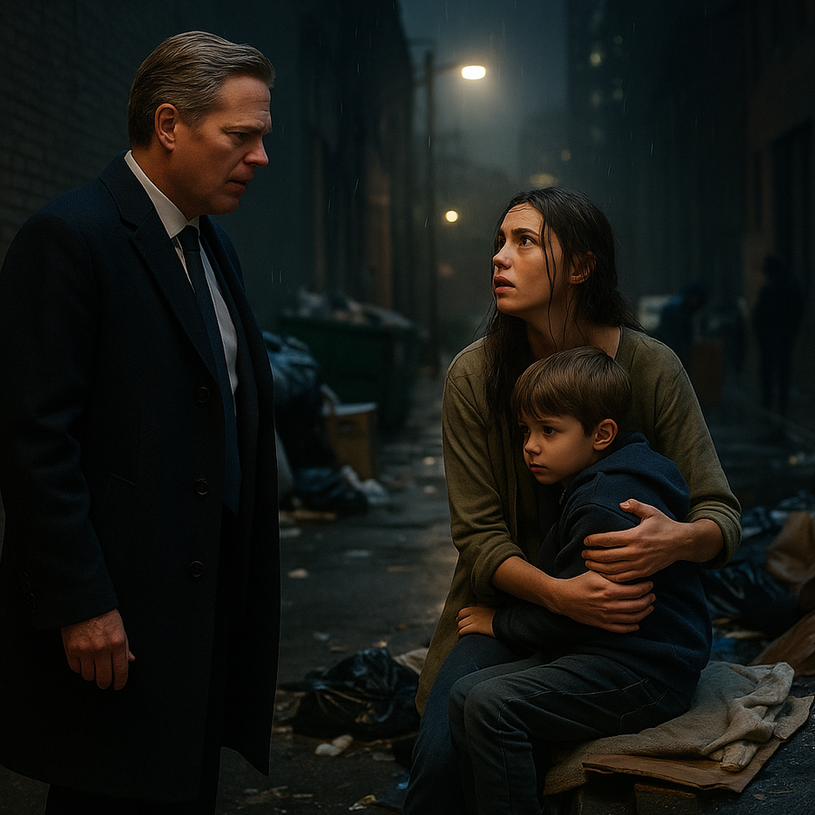 El niño en su regazo, de unos seis años, temblaba bajo una manta vieja. Michael se agachó, incrédulo. “¿Es tu hijo?”