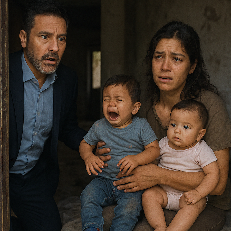 Alejandro siguió el ruido hasta una de las habitaciones del fondo, y al abrir la puerta, se quedó paralizado.Allí, entre mantas viejas y una cuna improvisada, estaba una mujer joven con dos bebés en brazos. Los pequeños no tendrían más de un año.