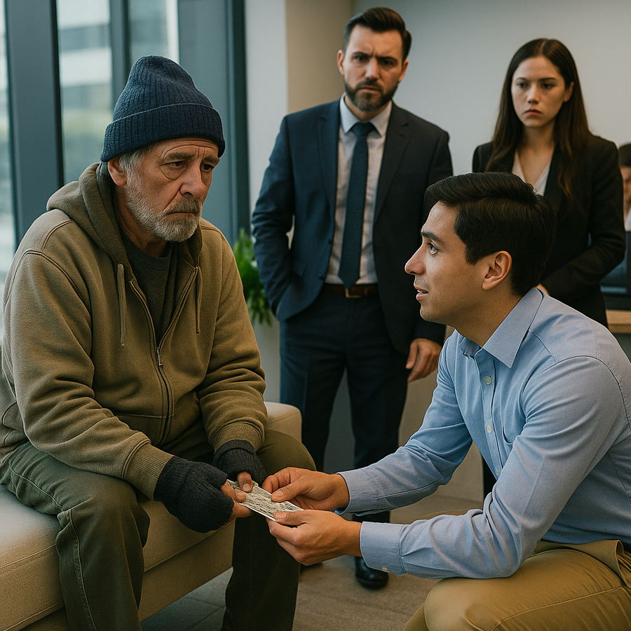 “Un millonario decidió disfrazarse de hombre pobre para poner a prueba la humanidad de sus empleados. Pero lo que uno de ellos hizo lo dejó sin palabras: un acto tan inesperado que cambió para siempre la forma en que dirigía su empresa y su manera de ver la vida. Una historia real que demuestra que la bondad auténtica no necesita cámaras, aplausos ni reconocimiento, y que la riqueza más grande está en el corazón.”