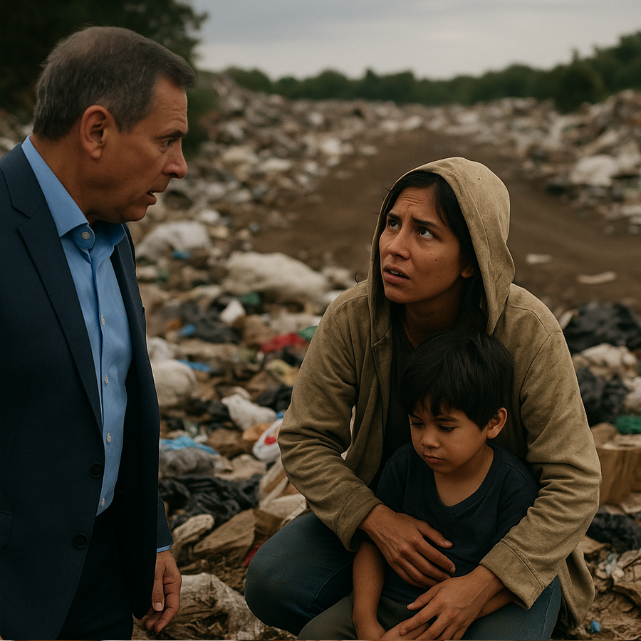 Al pasar frente a un enorme vertedero, algo llamó su atención. Entre los montones de basura, vio movimiento. Pensó que eran recolectores o animales, pero al acercarse distinguió claramente la figura de una mujer y un niño pequeño.