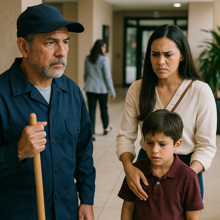Aquella mañana, León —en su papel de portero— estaba limpiando la acera cuando escuchó un llanto. Era Tomás. El niño estaba sentado en el suelo, frustrado, después de que uno de los hijos de los residentes lo empujara y se burlara de él. Nadie hizo nada.