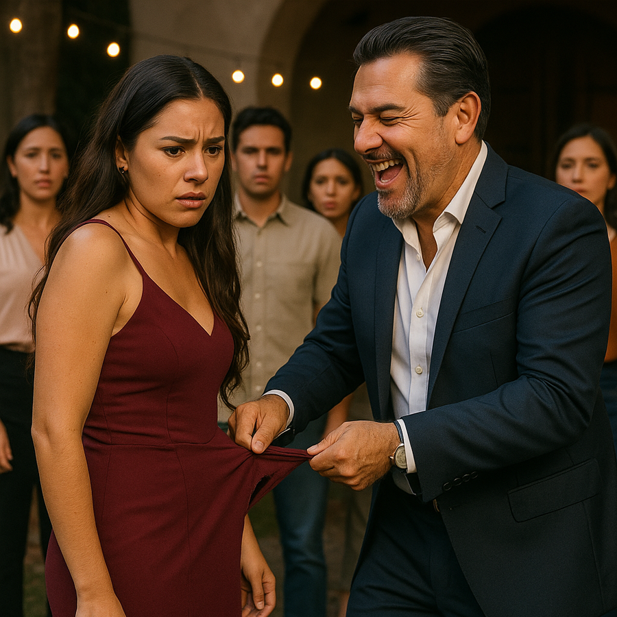 Entonces sucedió lo inimaginable. En un acto tan impulsivo como humillante, Héctor tomó el vestido de Lucía y lo rasgó frente a todos. Sus risas resonaron en el salón mientras ella quedaba paralizada, no tanto por el daño al vestido sino por la agresión pública y la completa falta de respeto. Algunos asistentes se llevaron las manos al rostro, y una mujer exclamó en voz baja que aquello era demasiado. El silencio que siguió fue pesado, incómodo, casi insoportable.