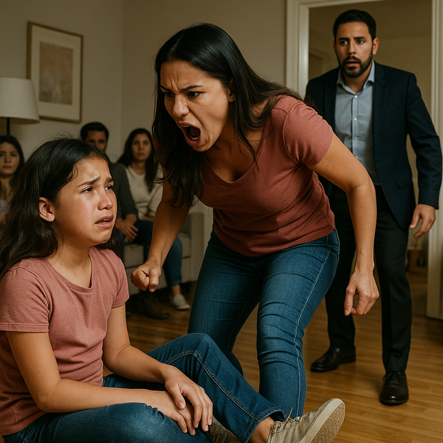 Al llegar a la puerta del cuarto, Héctor se quedó paralizado. Verónica sostenía del brazo a Camila, quien estaba sentada en el suelo, con lágrimas en los ojos.