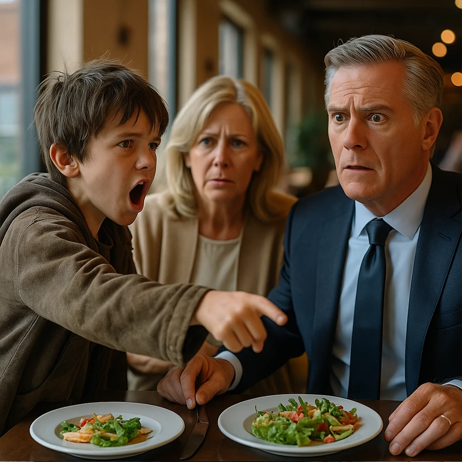 “Un multimillonario disfrutaba de una lujosa cena cuando un niño sin hogar irrumpió gritando: ‘¡No coman eso!’. Todos lo miraron con desprecio, pero segundos después lo que reveló el pequeño dejó helados a los presentes. La verdad detrás de esas palabras destapó un secreto tan impactante que cambió para siempre la vida del magnate y de quienes estaban allí.”