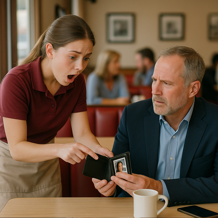 Minutos después, Edward se levantó, dejó unos billetes sobre la mesa y salió apresurado tras recibir una llamada. Pero en su prisa, olvidó su cartera. Emily la encontró mientras limpiaba la mesa.