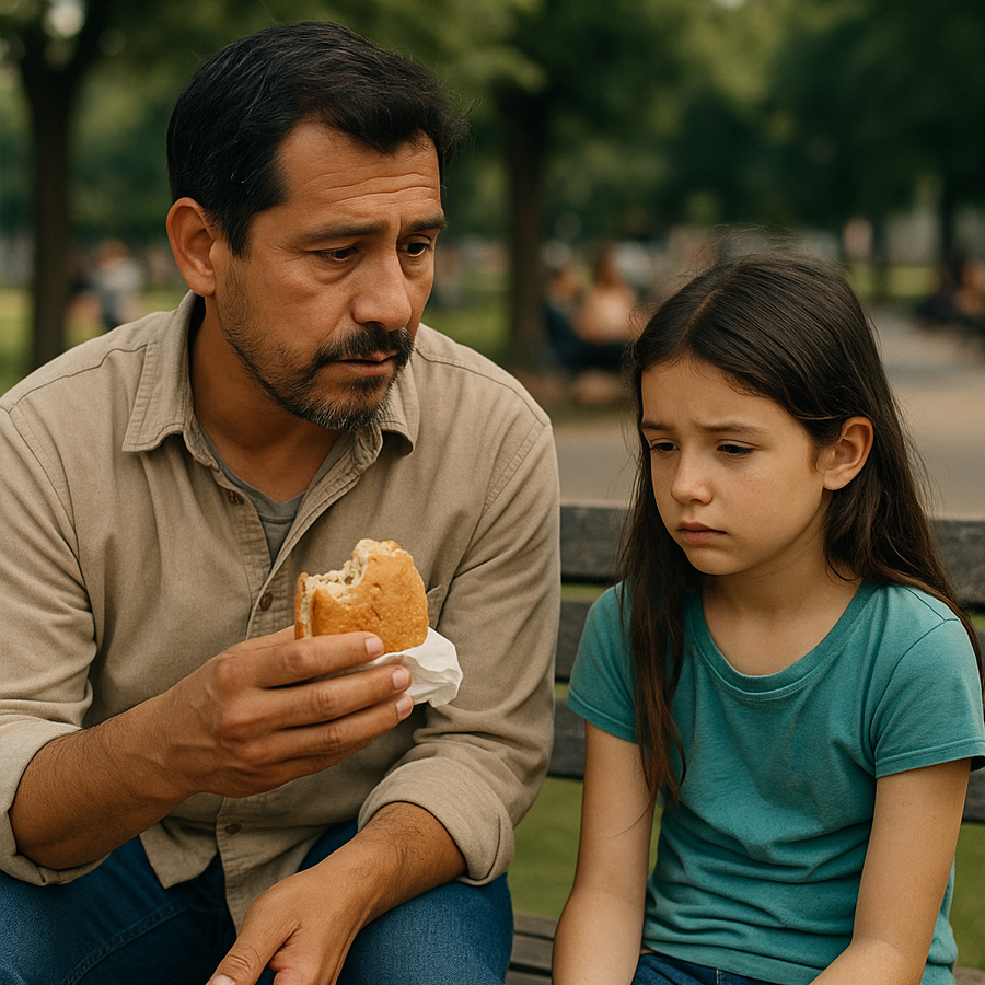 “Un padre soltero y humilde compartió su sándwich con una niña desconocida en un parque — sin saber que era la hija de una de las mujeres más ricas del país. Lo que ocurrió minutos después conmovió a todos los presentes: un gesto sencillo, una verdad inesperada y un encuentro que cambiaría para siempre la vida de un hombre bueno y recordaría al mundo que la generosidad no entiende de clases sociales.”