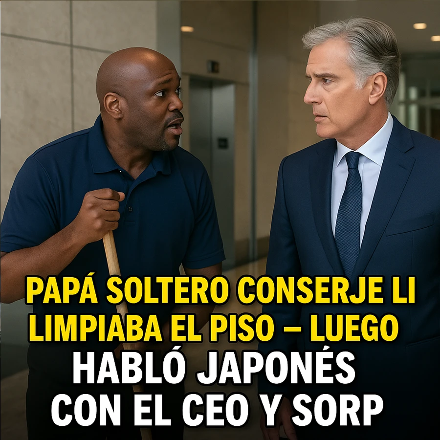 Un papá soltero trabajaba como conserje, limpiando el piso en silencio, cuando el CEO millonario entró con un importante cliente japonés. Lo que pasó después dejó a todos con la boca abierta: el conserje se unió a la conversación en perfecto japonés, cambiando el rumbo de la reunión y revelando un pasado que nadie en la empresa imaginaba.