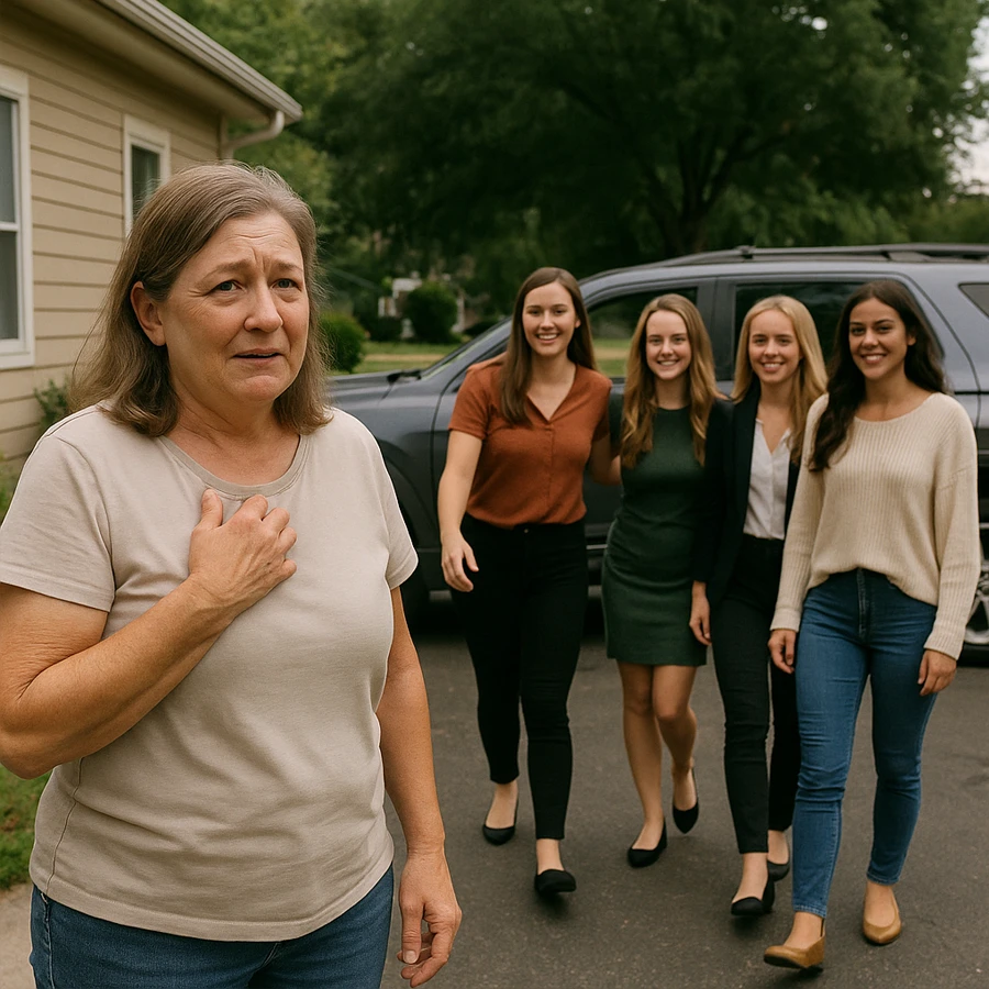Una mañana cualquiera, mientras Marianne preparaba café en su modesta cocina, escuchó el ruido de un motor potente. Al mirar por la ventana, vio un SUV negro detenerse frente a su casa. De él descendieron cuatro mujeres jóvenes, seguras y sonrientes.