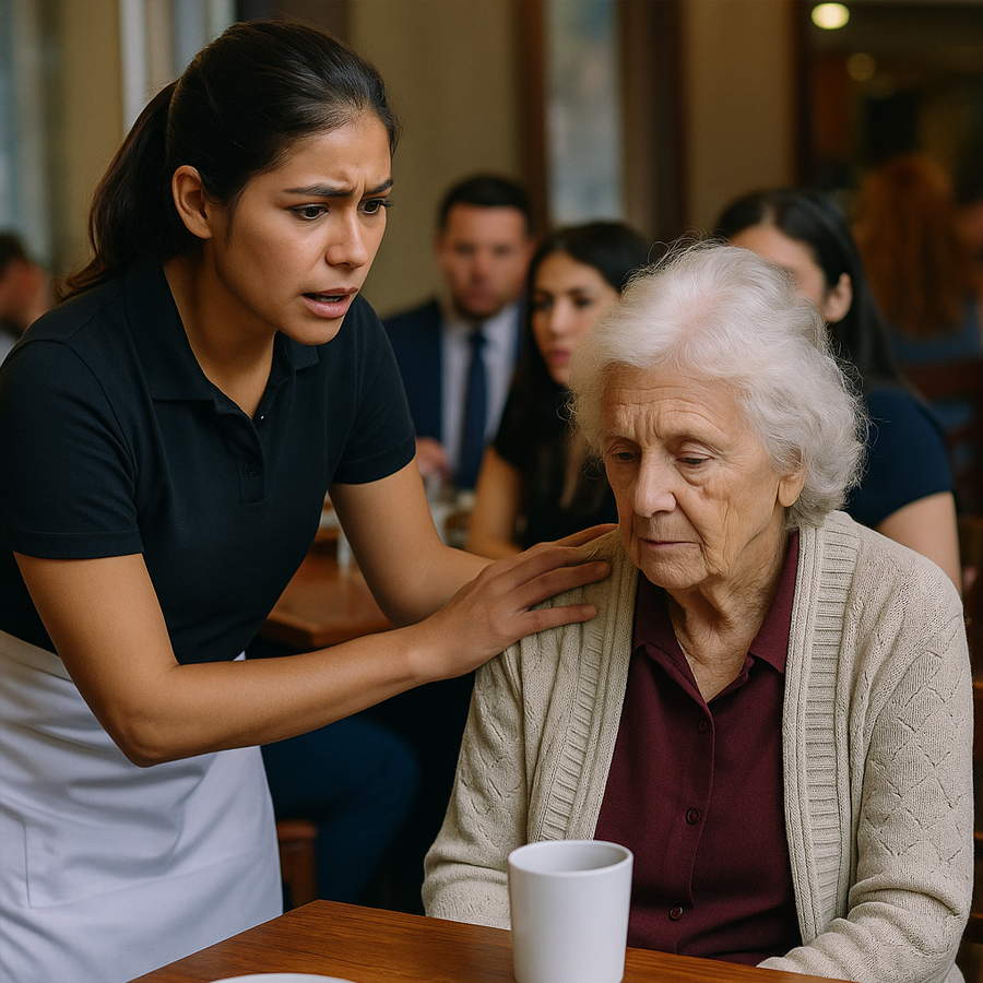 “Una joven camarera intervino para defender a una anciana humillada por unos clientes arrogantes sin imaginar que la mujer que ayudaba era en realidad una poderosa millonaria. Lo que sucedió después dejó a todo el restaurante sin palabras: un acto de humildad, un gesto inesperado y una lección sobre respeto que cambiaría la vida de todos los presentes para siempre.”