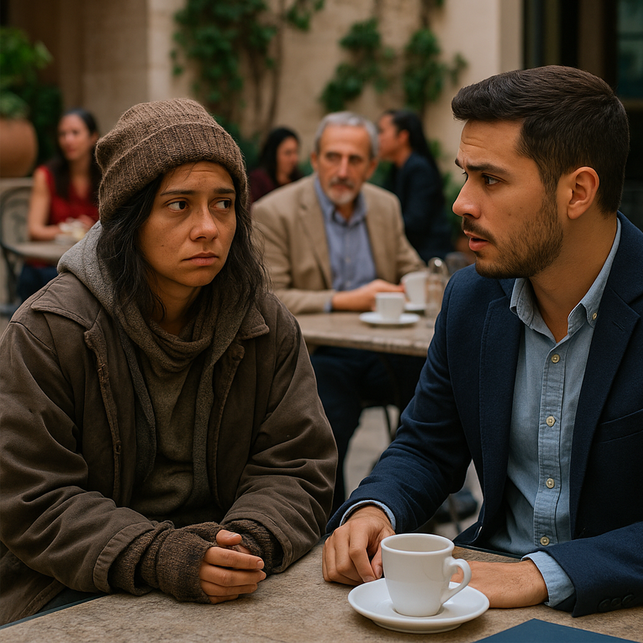 Daniel sonrió con amabilidad, pero ella detectó una sombra de duda en su mirada. Él no la rechazó, pero la sorpresa era evidente. Era lógico: él esperaba a alguien muy distinto. Aun así, la invitó a sentarse, pidió dos cafés y trató de continuar la conversación.