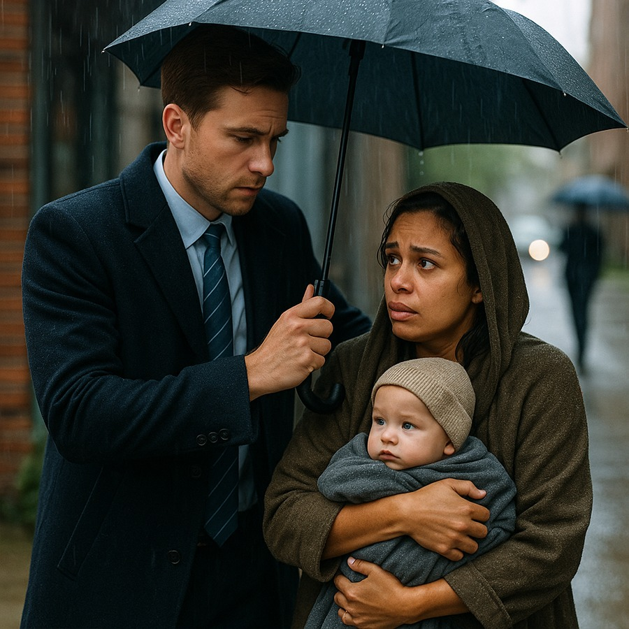 “Una mujer con su bebé bajo la lluvia… y un desconocido cambió su destino”