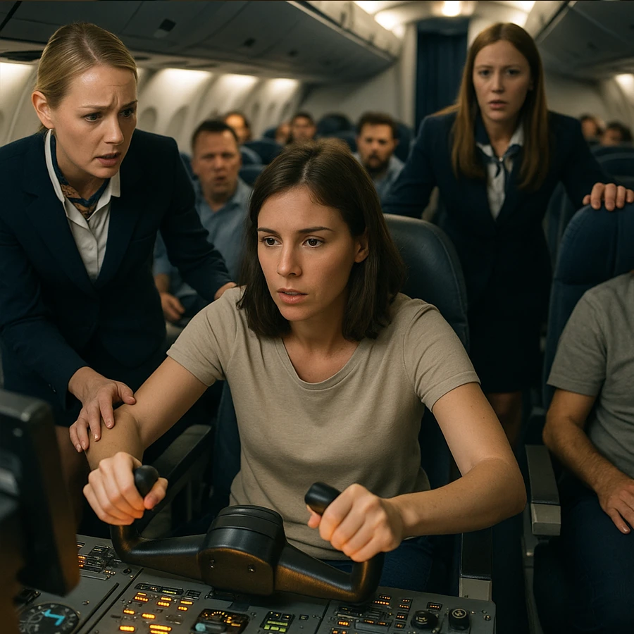 Todos voltearon hacia Camila. Ella, con el corazón desbocado, dudó unos segundos. Nunca había pilotado un avión comercial real, solo simuladores. Pero comprendió que no había alternativa: decenas de vidas dependían de ella.