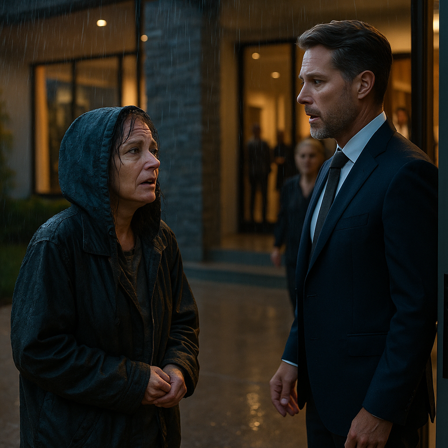 A través del vidrio vio a una mujer de unos cuarenta años, empapada por la lluvia, abrazando una chaqueta rota. Su rostro estaba pálido, los labios temblaban. Y, sin saber por qué, Alexander sintió un nudo en el pecho.