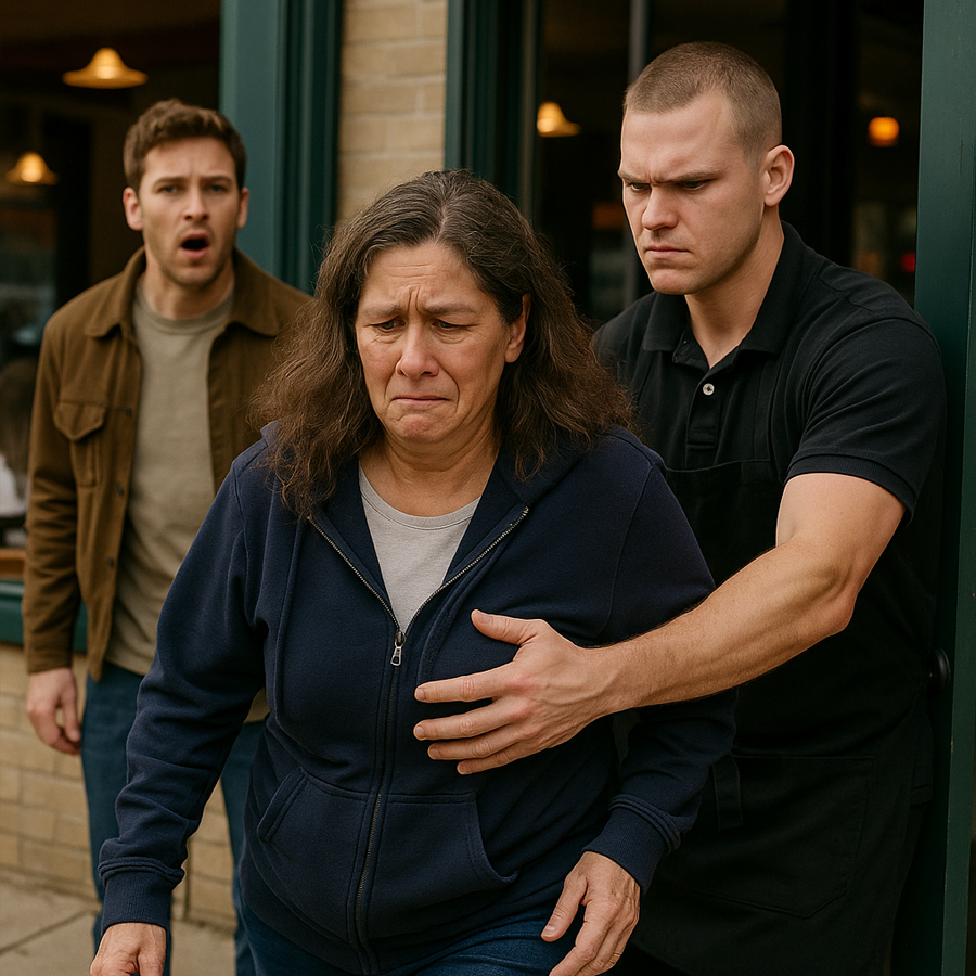 “Una mujer humilde fue echada del restaurante entre burlas y miradas de desprecio. Nadie imaginaba que su hijo, el verdadero dueño del lugar, regresaría al día siguiente… y con una sola frase haría temblar a todos los empleados que la humillaron.”
