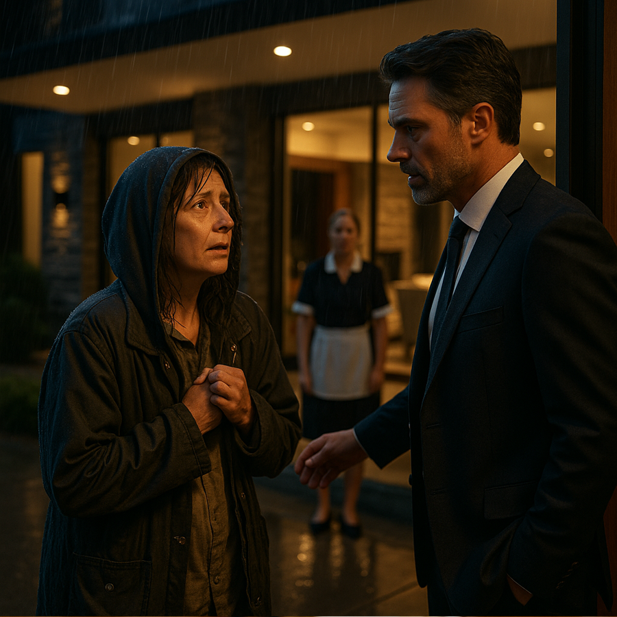 La ama de llaves abrió y encontró a una mujer empapada, con el rostro cansado y un abrigo desgastado.