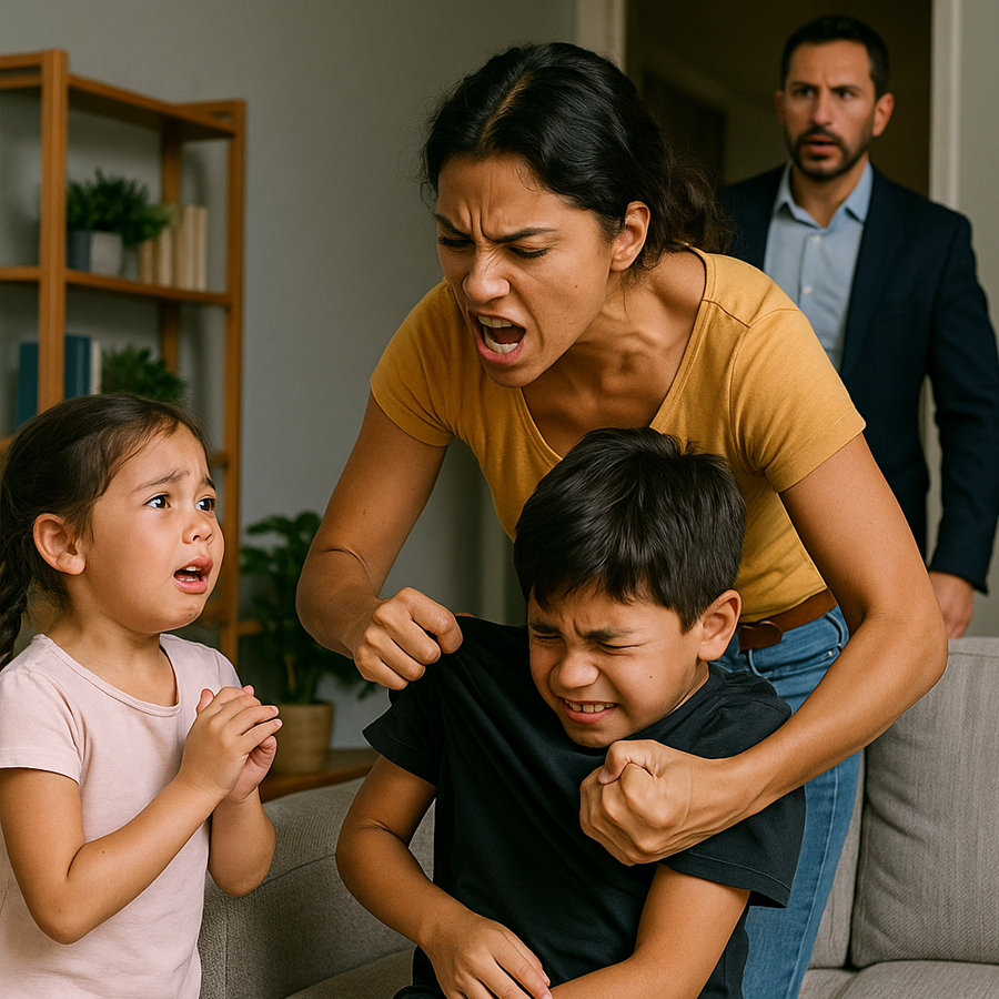 “Una niña de seis años lloraba y suplicaba ‘¡Por favor, no le pegues!’ mientras su madrastra perdía el control y golpeaba a su hermano frente al sofá de la mansión. Pero en el momento más oscuro, la puerta se abrió… y el padre millonario presenció la escena que cambiaría sus vidas para siempre. Lo que hizo después dejó a todos sin palabras y reveló una verdad que nadie imaginaba detrás de aquella familia perfecta.”
