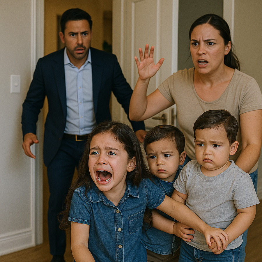 Rodrigo no esperó más. Cruzó la ciudad a toda velocidad, y al llegar, vio lo que más temía: su hija mayor, Camila, abrazando a sus hermanos, con la mirada aterrada. La esposa de Rodrigo, Verónica, estaba fuera de sí, gritando, con lágrimas de rabia, mientras una lámpara caída iluminaba el caos de la habitación.