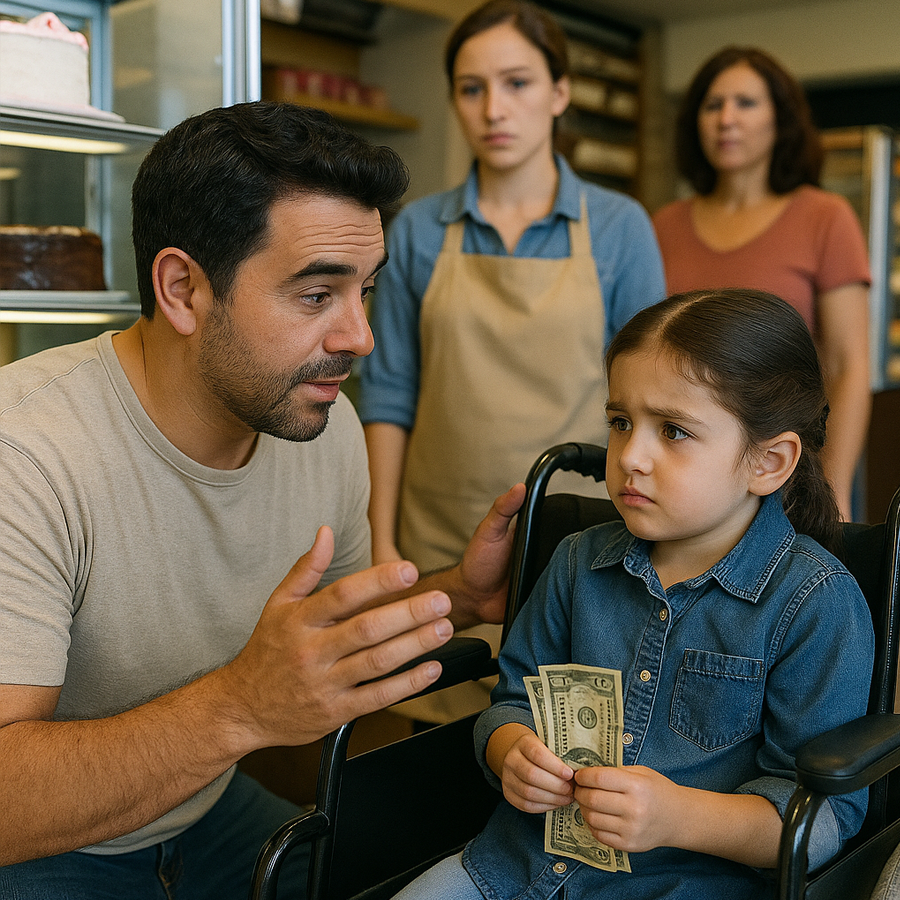 “Una niña paralizada con solo tres dólares intentaba comprar su pastel de cumpleaños… hasta que un padre soltero se acercó y cambió su destino frente a todos. Lo que sucedió después en esa pequeña panadería mexicana dejó a los presentes en lágrimas, y su historia está inspirando a miles sin que nadie pueda creer cómo terminó todo.”