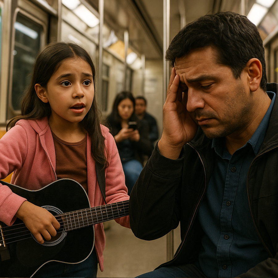 El vagón del metro vibraba con el traqueteo de las vías y el murmullo de decenas de pasajeros cansados. Era una tarde cualquiera en la Ciudad de México. Entre el bullicio y las luces fluorescentes, una niña de unos nueve años, con una guitarra vieja colgada del hombro, caminaba tímidamente por el pasillo central.