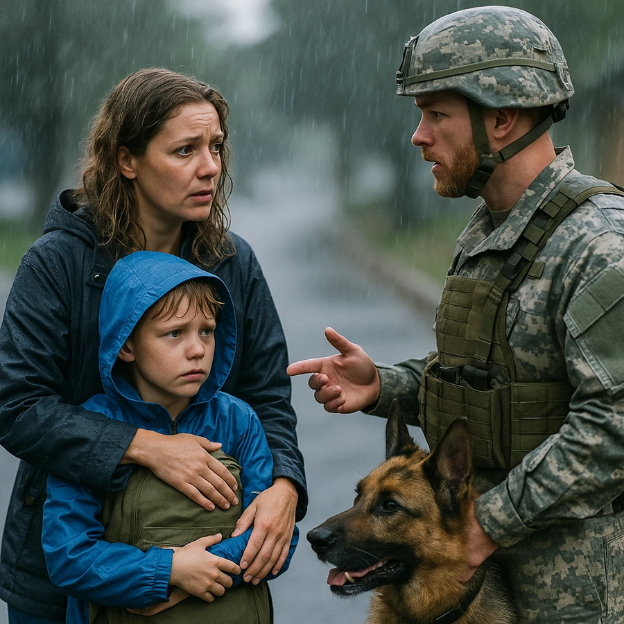 La vida a veces se encarga de mostrar lo más cruel de la realidad en el momento menos esperado. Una viuda y su hijo pequeño fueron vistos bajo una tormenta, sacando sus pertenencias mientras eran desalojados de su humilde vivienda. La escena, desoladora, parecía ser una más de tantas injusticias cotidianas, hasta que un soldado que patrullaba la zona con su perro se acercó y cambió la historia para siempre.