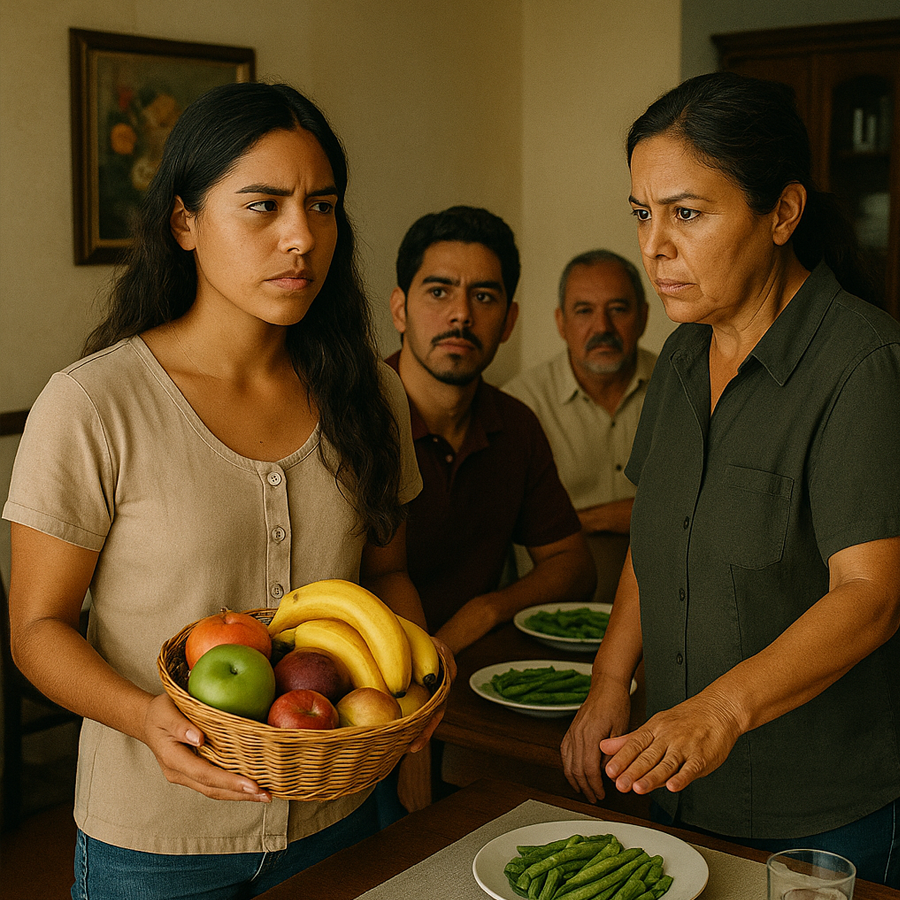 Lucía, una joven de origen humilde, había sido invitada a cenar por primera vez en la casa de la familia de su novio, Diego. Era una ocasión importante: conocer a los padres del hombre al que amaba. Aunque no tenía mucho dinero, decidió llevar algo que representara sinceridad y afecto: una canasta de frutas frescas, cuidadosamente seleccionadas por ella misma en el mercado local.