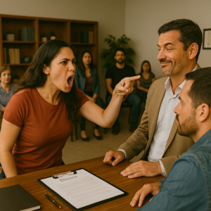 Mi esposa, Julia, se quedó helada, con la cara encendida de rabia, el pecho subiendo y bajando rápido. A su lado, su ex, Martín, apretaba los labios, tratando de poner cara de ofendido y digno al mismo tiempo.