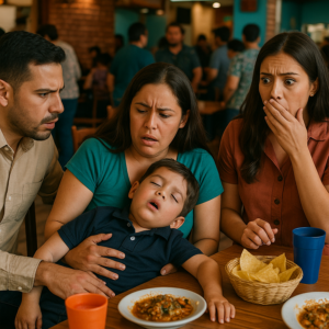 Cuando los platos llegaron, Lucas empezó a comer con entusiasmo, pero no pasaron ni tres minutos antes de que su rostro cambiara. Primero se tocó la garganta. Luego supe que estaba teniendo dificultades para respirar. Su mirada se llenó de pánico.