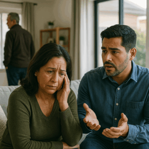 Bajamos. La sala estaba ordenadísima, como nunca. Mamá había perfumado la casa con canela y clavo, el truco que siempre usaba cuando venía visita importante. Ella llevaba un vestido rojo que casi nunca se ponía y el cabello suelto, con ondas suaves. Por un momento, no la vi como mi mamá, sino como una mujer que todavía podía enamorar.